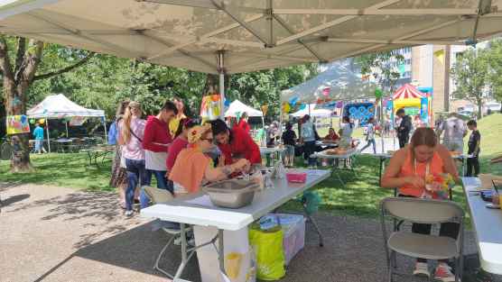 Une dizaine d'agents de la Ville et une trentaine de bénévoles ont permis le bon déroulement de cet après-midi festif, porté par la Ville et son Espace de Vie Social, en partenariat avec plusieurs acteurs de la vie communale : Les Enfants d'abord, Les Petits d'Abord, La Seclinoise Javelot, Cœur de Femmes, le Secours Populaire, le Conseil Citoyen, les Mouchons, les jeunes du Conseil des Jeunes, et des parents et jeunes volontaires du quartier de La Mouchonnière.