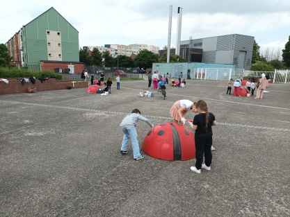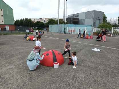 C'est dans le cadre du Fonds de Travaux Urbains (FTU) que les coccinelles installée sur le parvis devant les écoles Dutoit, Louise-Michel et Marie-Curie ont été repeintes. Le comité citoyen de La Mouchonnière est à l'origine du projet, réalisé en partenariat avec la Ville et les comités de parents d'élèves des établissements scolaires concernés. Quelques temps après cet embellissement, ce sont des jeux, peints au sol, qui ont pris place sur le parvis. Ces aménagements urbains ont été réalisés en lien avec le projet de sécurisation de ces trois établissements scolaires.