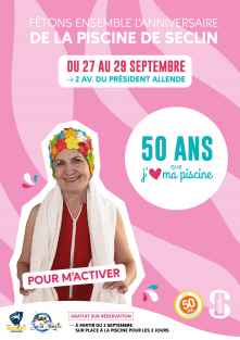 Inaugurée le 1er mai 1974, la piscine municipale célèbre ses 50 ans en 2024 et vous réserve à cet effet un week-end de surprises et d'activités originales du vendredi 27 au dimanche 29 septembre. Entrée gratuite sur réservation à partir du 2 septembre sur place à la piscine municipale pour les trois jours.